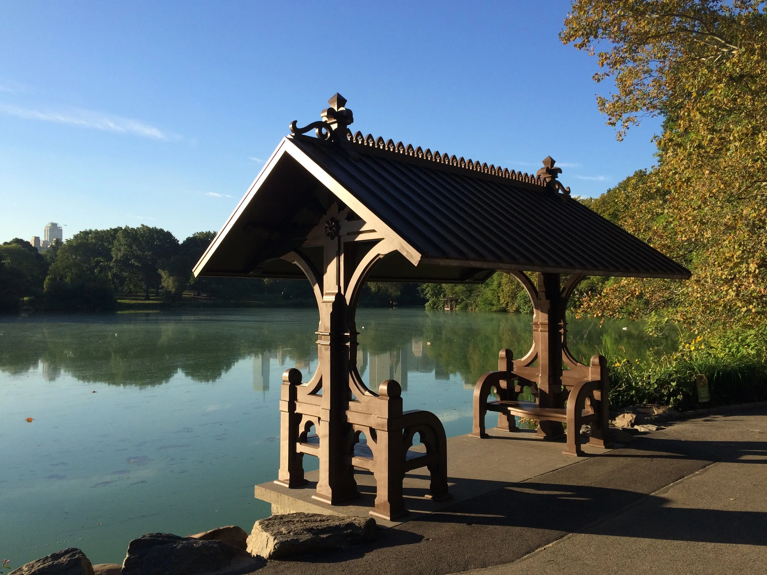 Beginning in 1860, six boat landings were constructed along the shoreline of the Lake. The Lake covers 20 acres and connects the Ramble to the north, Bethesda Terrace to the south, with landscapes along the west. The small structures served as scenic lookouts and docks for recreational boaters. A passenger boat made a circuit around the Lake transporting visitors between all six landings, departing from Bethesda Terrace.